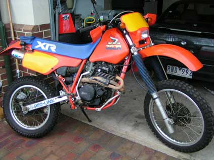 Engine Type: Dry Sump, SOHC, RFVC, air cooled, fours stroke single, 32 BHP @7500RPM, 23.7 ft-lb @600RPM. Engine Displacement - 353cc Bore Diameter - 84.0 mm Stroke - 63.8 mm Compression Ratio - 9.5:1 Carb/s - single 35mm Keihin Ignition: Solid State CD, with electronic advance. NGK DPR8EA-9 spark plug. Transmission - 6 Speed Final drive - 520 O-ring chain (104 links) 14 tooth front sprocket, 42 tooth rear sprocket Wheelbase - 56.3 Inches Seat Height – 36.2 Inches Ground Clearance – 12.6 Inches Dry Weight - 247 pounds (claimed) Tank Capacity – 2.5 Gallons 0.8 reserve Front Suspension - 41mm air adjustable forks, 11 inches travel Rear Suspension - Pro Link with adjustable rebound and compression damping, 11 inches travel Front Brakes - Disc with dual piston caliper and braided stainless steel brake line Rear Brakes - Drum Front Rim - 21 inches , tire 3.00 x 21 Rear Rim - 17 inches, tire 5.10 x 17 Colors – Red plastics, red frame, black engine, blue seat Serial numbers: Engine-NE01E-5000001 through 5005622, Frame-NE010-FK000015 through FK205671 |